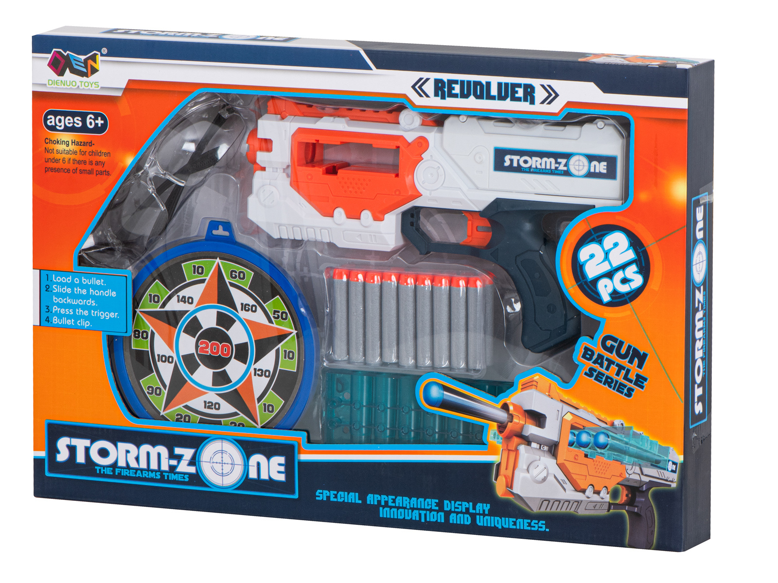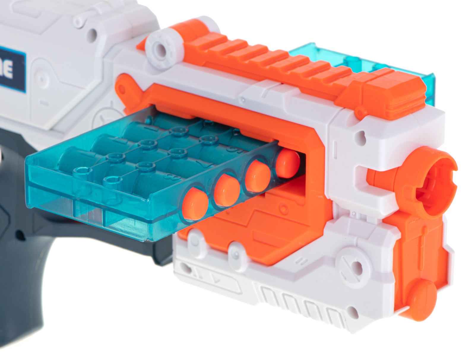 Žiarivé farby pripomínajú zbrane z obľúbených počítačových hier, a preto je hračka atraktívna pre deti všetkých vekových kategórií.