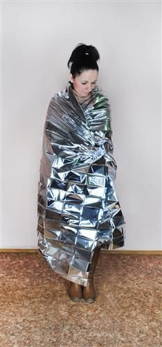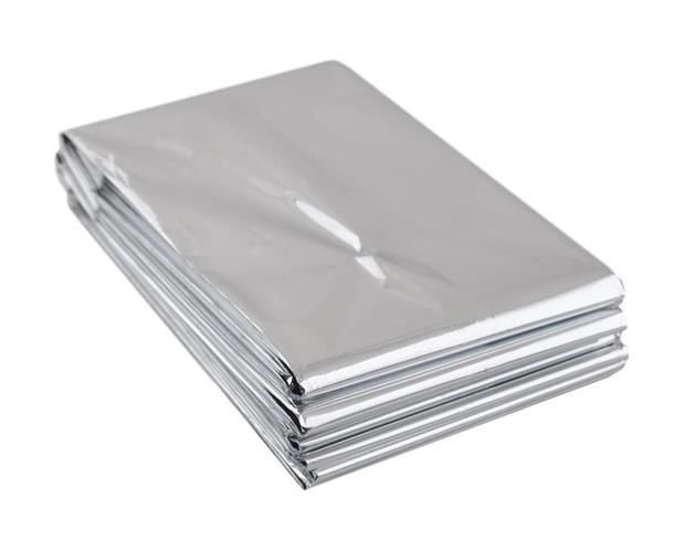 Záchranná termo deka z kvalitnej striebornej fólie používaná pri záchrane, turistike, lezení a núdzových situáciách alebo extrémnych podmienkach.