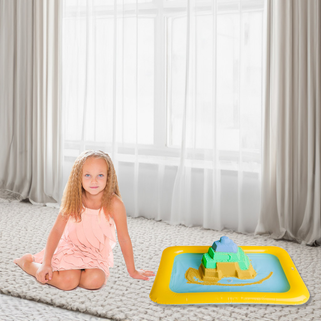 Predstavujeme vám skvelú pomôcku, ktorú môžete najviac využiť v kombinácii s tekutým kinetickým pieskom. Podložka je pre neho ako stvorená. Deti sa tak môžu hrať bez obáv a piesok bude na jednej kope. Túto podložku určite ocenia nielen deti, ale aj rodičia kvôli poriadku. Podložka je vyrobená z plastu a je nafukovacia. Vďaka tomu, že je nafukovací, je veľmi dobre prenosný, aj keď ho práve nepoužívate.