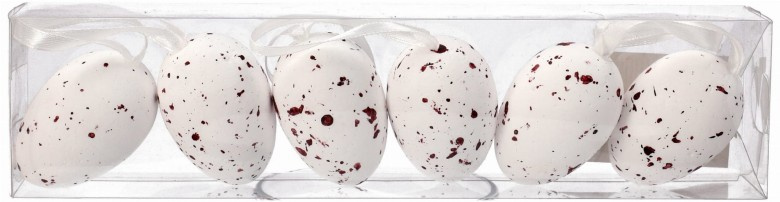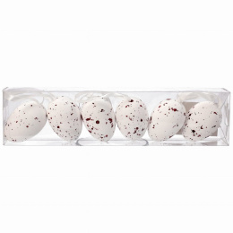 Prepeličie vajcia z polystyrénu na zavesenie, sada 6 ks., to dekoratívne prvky, ktoré dokonale zapadajú do veľkonočného sviatočného aranžmánu. Vyrobené z ľahkého polystyrénu, vajíčka majú prirodzený vzhľad prepeličích vajec a vďaka otvoru v hornej časti ich možno ľahko zavesiť. Ideálne na ozdobenie vetvičiek vo váze, vencov alebo ako závesné dekorácie v dome. Sú to dokonalé doplnky na vytvorenie jedinečnej atmosféry počas Veľkej noci.