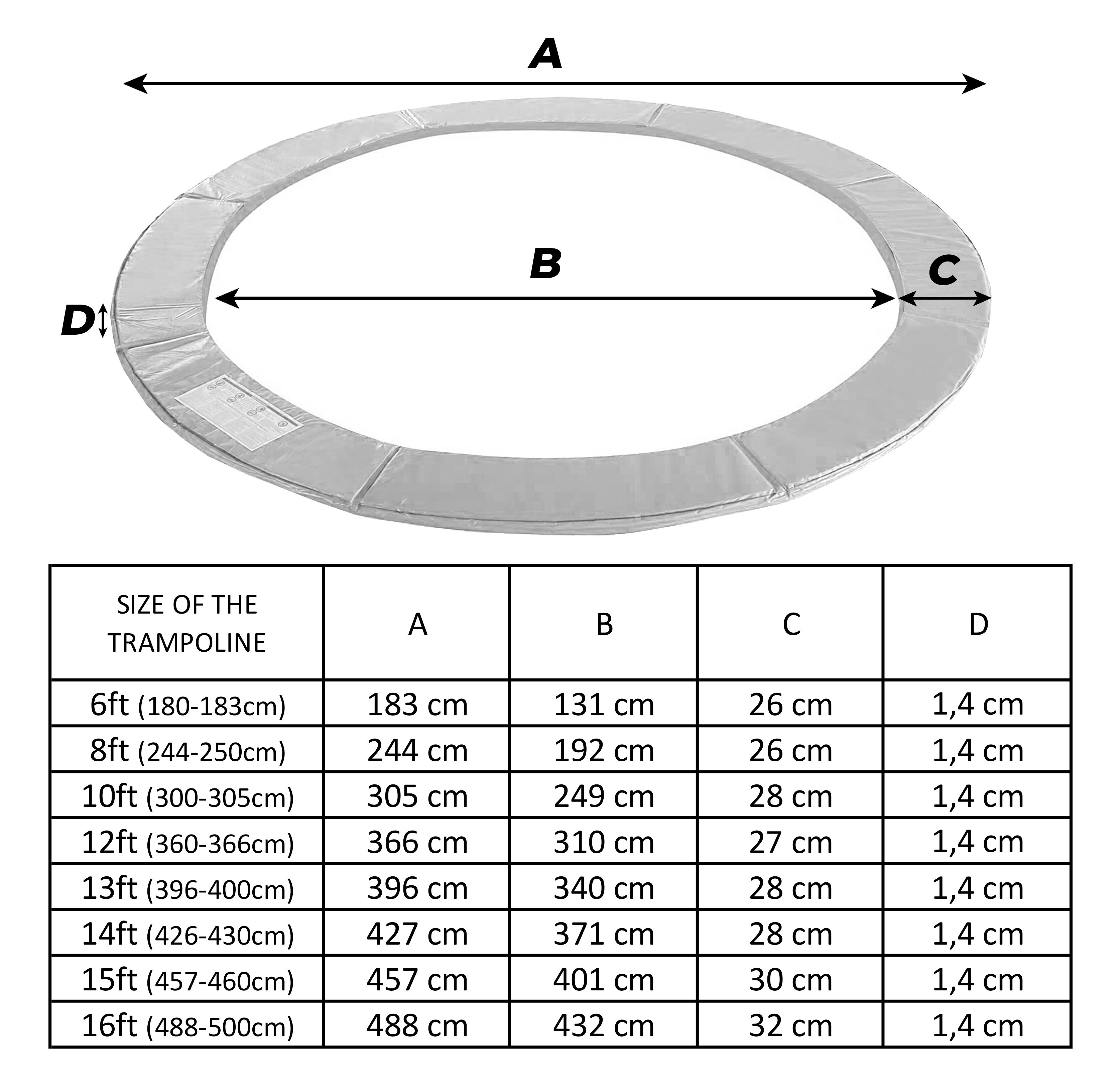Má kvalitné polstrovanie, je odolný proti dažďu, poveternostným vplyvom a žiareniu.Tento náhradný ochranný kryt pružín je plnohodnotnou náhradou za pôvodný originálny diel a možno ho použiť aj na trampolíny od iných výrobcov, dôležité je len dodržať uvedený priemer či veľkosť.