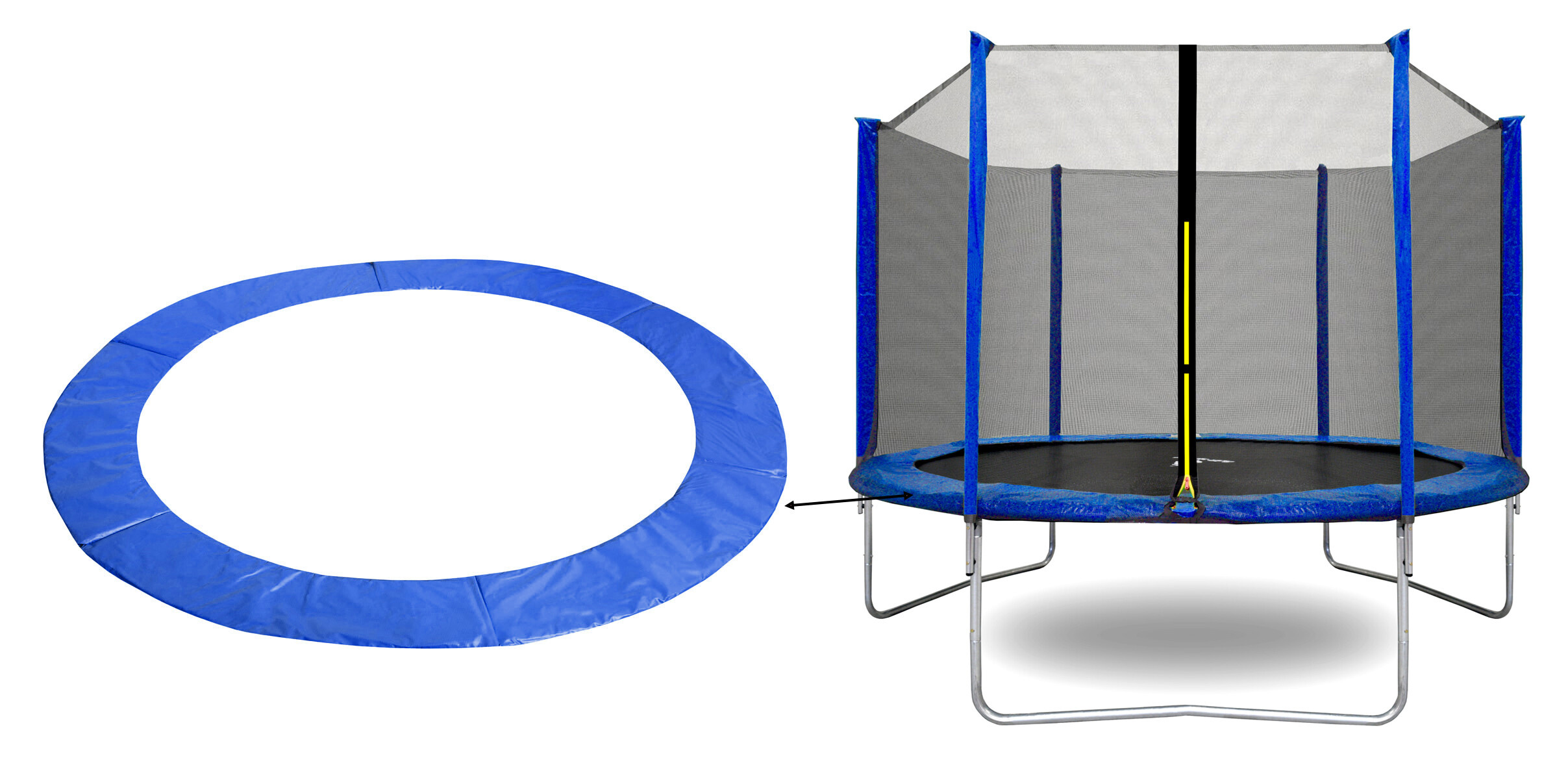 Kryt pokrýva pružiny po celom obvode trampolíny aa trampolínu možno veľmi ľahko a rýchlo nainštalovať bez potreby náradia.