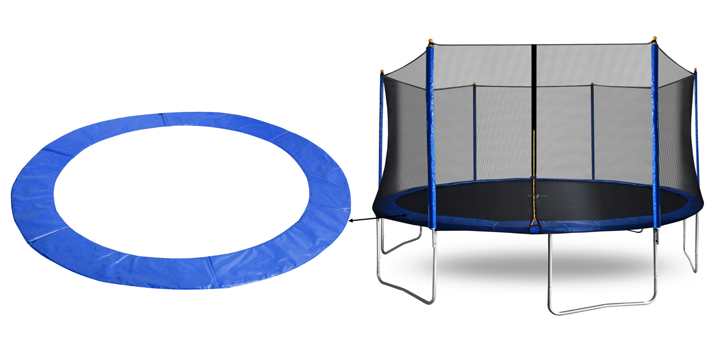Ochranný kryt pružín (polstrovaný obvodový pás) slúži predovšetkým na dosiahnutie maximálnej možnej bezpečnosti pri používaní Vašej trampolíny.