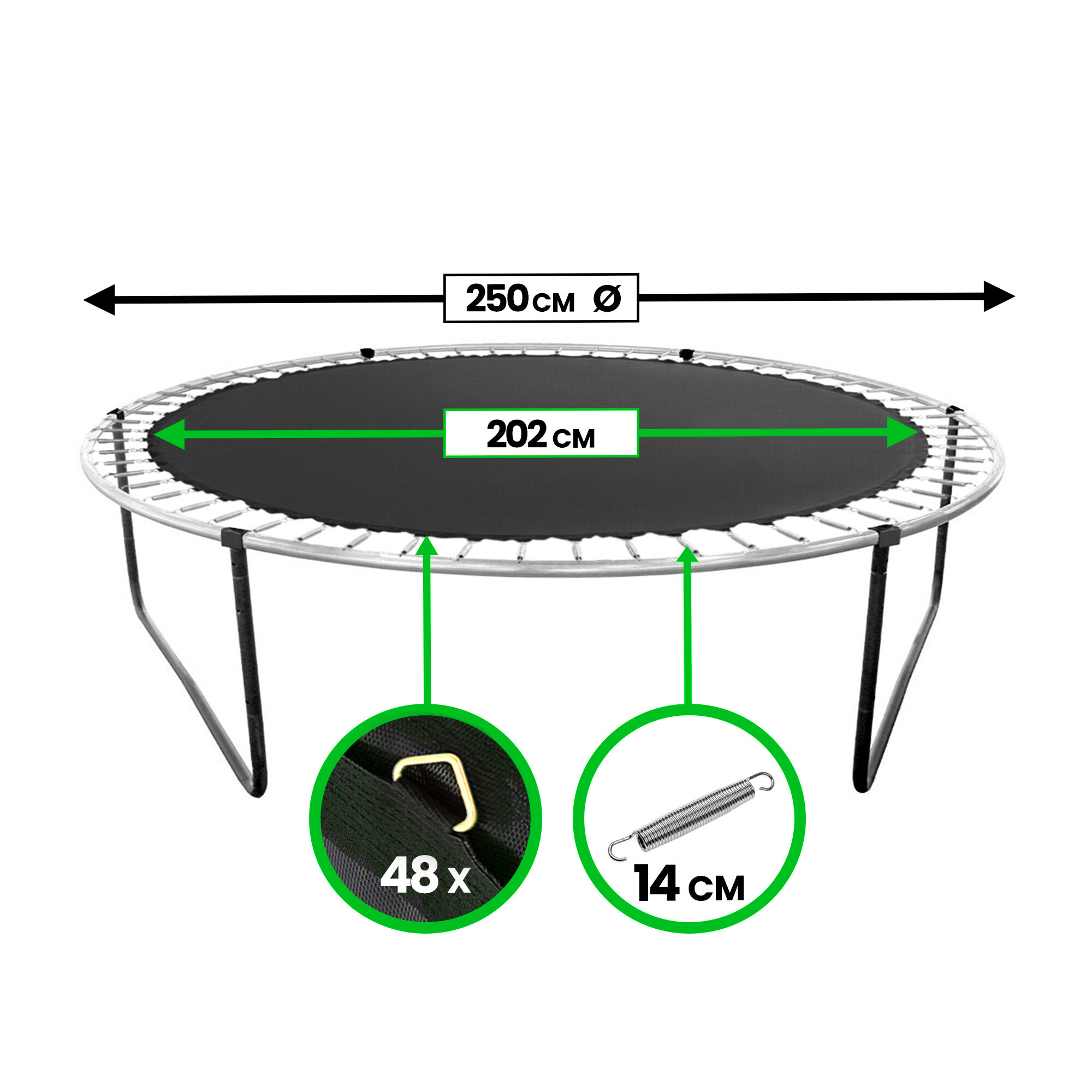 Náhradná trampolína s veľkosťou 250 cm pre 48 slučiek.