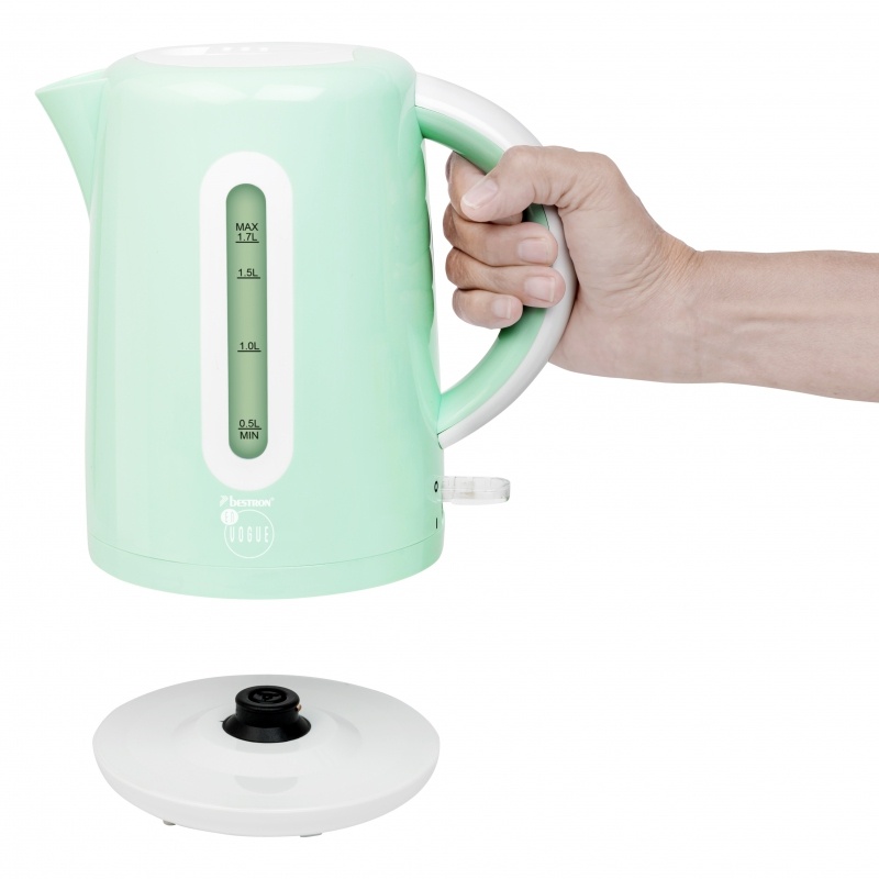 Vysokokvalitné plastové puzdro. Rýchlo uvarí vodu na čaj, polievku atď. Objem 1,7 l Automatické zastavenie varu a ochrana proti spusteniu "nasucho". Integrované vykurovacie teleso odolné voči usadzovaniu vodného kameňa. Indikátor hladiny na oboch stranách. Otočné veko s bezpečnostným zámkom. Praktický navíjací kábel, spínač s kontrolkou, protišmykové nožičky.