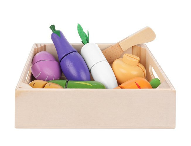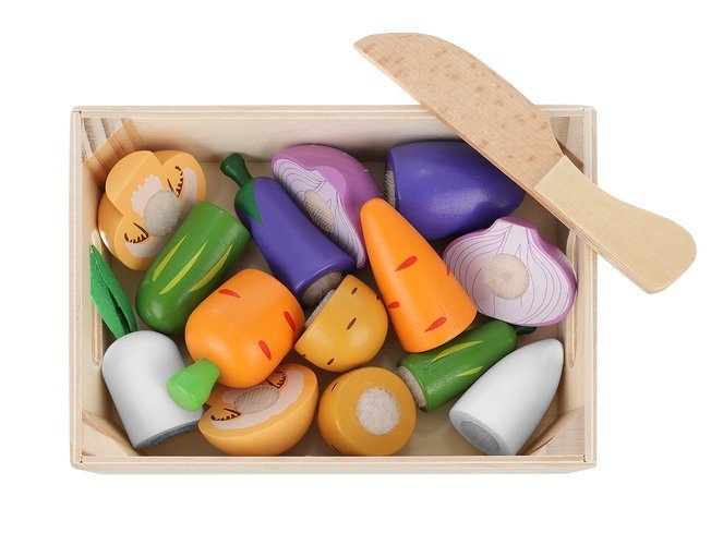 Sada farebnej zeleniny v krabici je skvelým doplnkom zábavy pre malých kuchárov, ktorí sa radi hrajú doma, nakupujú alebo varia. Deti rady pozorujú dospelých a zostava im to umožní. Umožní vám hrať role už od útleho veku a bude plniť výchovnú funkciu.