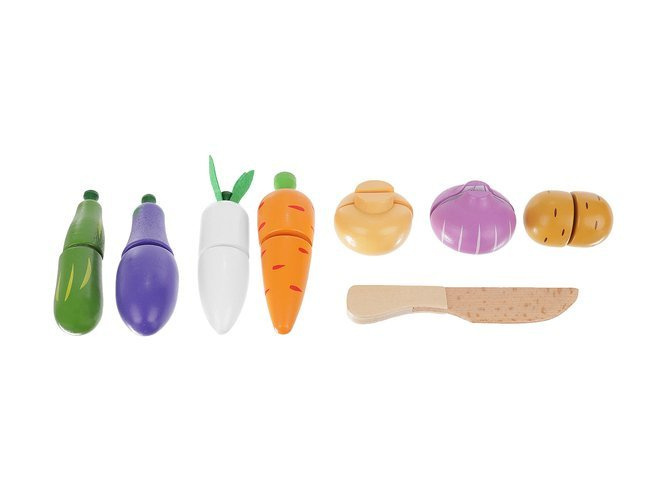 Extrémne "chutná" a farebná kolekcia napodobenín zeleniny je precízne vyrobená a jej živé a šťavnaté farby ovplyvňujú estetickú hodnotu, priťahujú tak pozornosť dieťaťa a vyzývajú k hre.