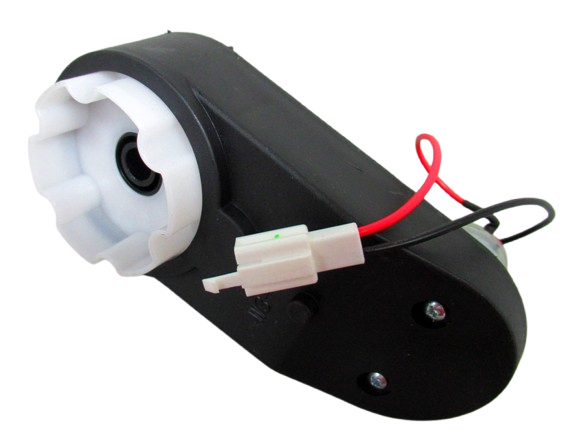 Zadný motor s prevodovkou pre akumulátorové vozidlo. Technické parametre: Napätie - 12V Počet otáčok - 16 000 ot/min Model motora RS 380 Priemer otvoru pre os - 10 mm Priemer hnacieho kolesa (bieleho prvku) - 58 mm Priemer motora - 27 mm Počet výstupkov hnacieho kolesa (bieleho prvku) 6