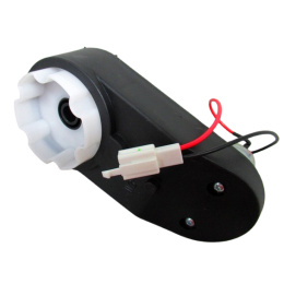 Zadný motor s prevodovkou pre akumulátorové vozidlo. Motor je namontovaný na jednu stranu. V prípade potreby inštalácie motorov na obe strany - je nutné zakúpiť 2 ks. Pravá/ľavá strana. Motor je obojsmerný - to znamená, že pre preprogramovanie motora, aby jazdil opačným smerom, je potrebné prehodiť káble v bielej zástrčke (obrázok nižšie - jemne vytiahnuť čierny kábel a na jeho miesto nasadiť červený kábel, a na miesto čierneho nasadiť červený - zameniť ich). Nie je potrebné nič spájkovať, aby ste zmenili stranu!
