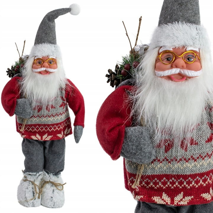MIKULÁŠ VIANOČNÝ VEĽKÝ 61 cm FIGÚRKA VIANOČNÉHO DUCHA Výška: 61 cm (so vztyčenou čiapkou) Šírka: 21 cm Rozkošný Santa dodá vašim Vianociam čaro a šarm. KRÁSNA DEKORÁCIA - DOKONALÝ DARČEK IDEÁL Santa Claus je vyrobený z plastu a má vlnenú čiapku s kožušinovým lemom a zvončekom na samotnom vrchole. 30 cm, je ideálny pre umiestnenie na verande, pri vchodových dverách, pri krbe, vedľa vianočného stola a v akomkoľvek inom kúte, kde možno vytvoriť čaro Vianoc.