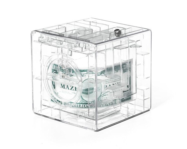Senzačná 3D pokladnica s bludiskom. Perfektná pomôcka pre tých, ktorí sa snažia ušetriť peniaze.Aby ste peniaze z prasiatka dostali, musíte najprv prekonať prekážkovú dráhu.