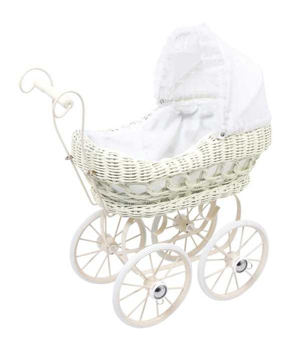 Tento biely prútený kočík na kovovom ráme je súčasne štýlovou hračkou a čarovnou dekoráciou. Krásne kolesá s drôteným výpletom potiahnuté gumou zaručujú tichú jazdu. Strieška z jemného textilu zdobená bielou čipkou a drobnými výšivkami sa dá sklápäť. Výrobok vyžaduje montáž, dodávaný s obrázkovým návodom na zostavenie.Hlavné vlastnosti: pogumované kolesá - tichá jazdasklápacia strieška atraktívne prevedenie z dreveného prútia.