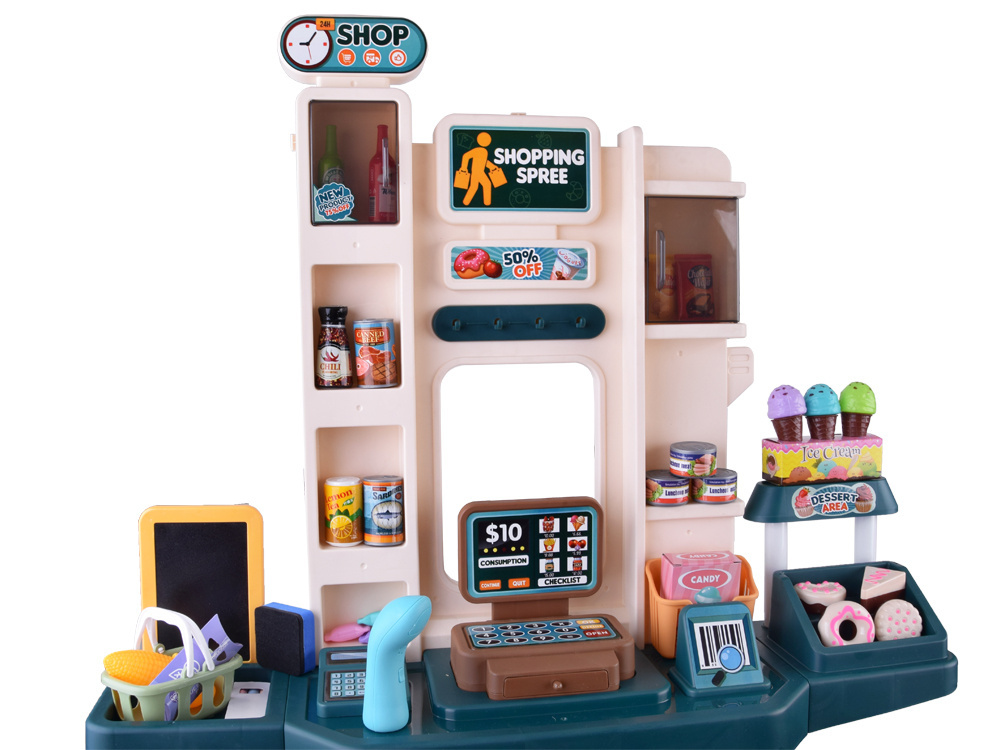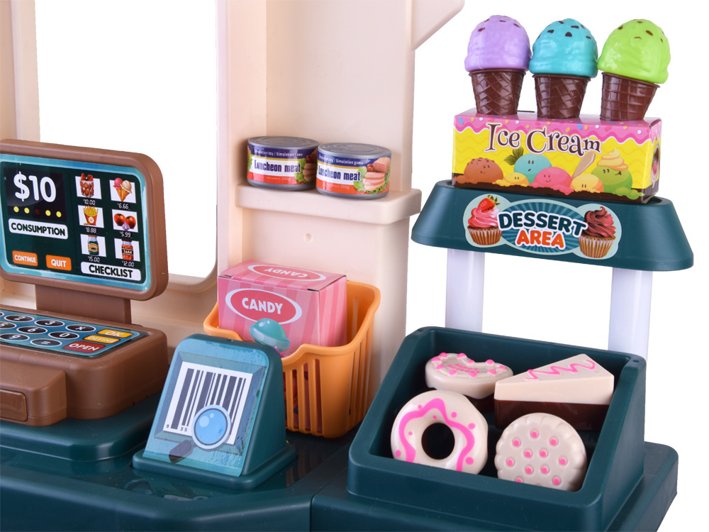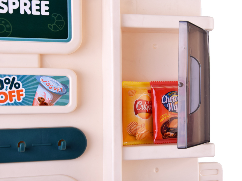 Predajňa je vybavená mnohými policami, takže sa do nej ľahko zmestia všetky položky. Na tabuľu môžeme napísať, kedy je náš obchod otvorený, alebo informácie o aktuálnych udalostiach. Po výbere všetkých potrebných produktov môžeme košík umiestniť na určené miesto a počkať v rade na pokladni. Predajňa je vybavená prenosným snímačom kódov, ktorý pri vymazaní každej položky vydá zvukový signál. Pokladňa má výsuvnú zásuvku na peniaze, vďaka čomu je hra realistickejšia.