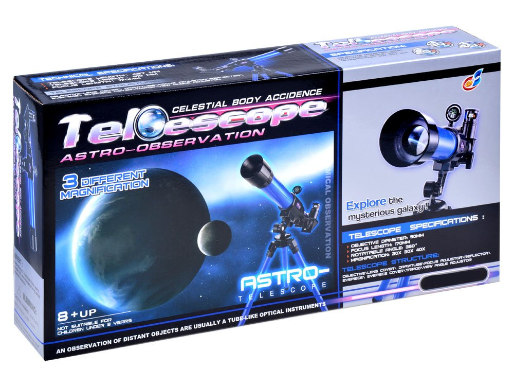 Ďalekohľad je vyrobený z plastu, hliníkový statív.