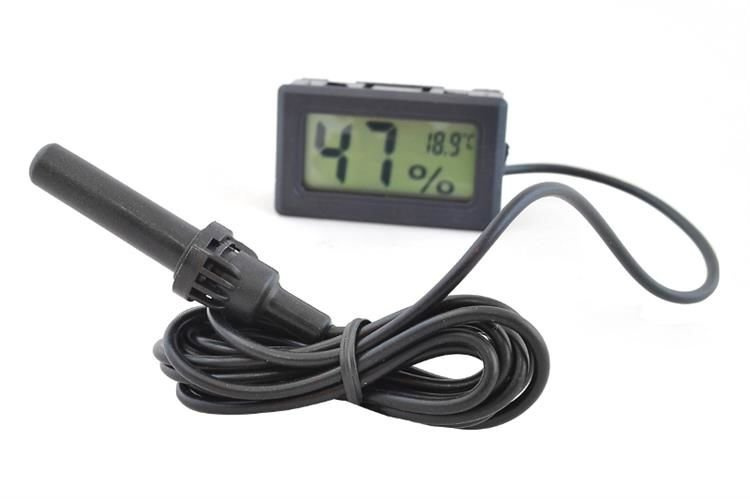 Elektronický vlhkomer s teplomerom s veľkým LCD displejom a sondou na dlhom kábli. zariadenie má dobré rozlíšenie merania a rýchlu odozvu. Stačí ich priložiť na otvorenú ruku a reakciu nástroja uvidíte takmer okamžite. sondu (senzor) možno umiestniť kamkoľvek - do akvária, terária, chladničky, mrazničky, skleníka atď.kdekoľvek stačí rozsah merania teploty od -50 stupňov C do 70 stupňov C.