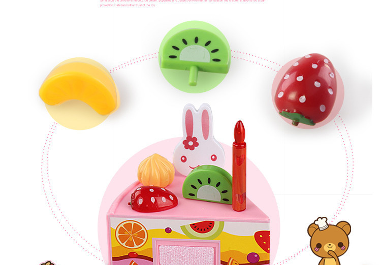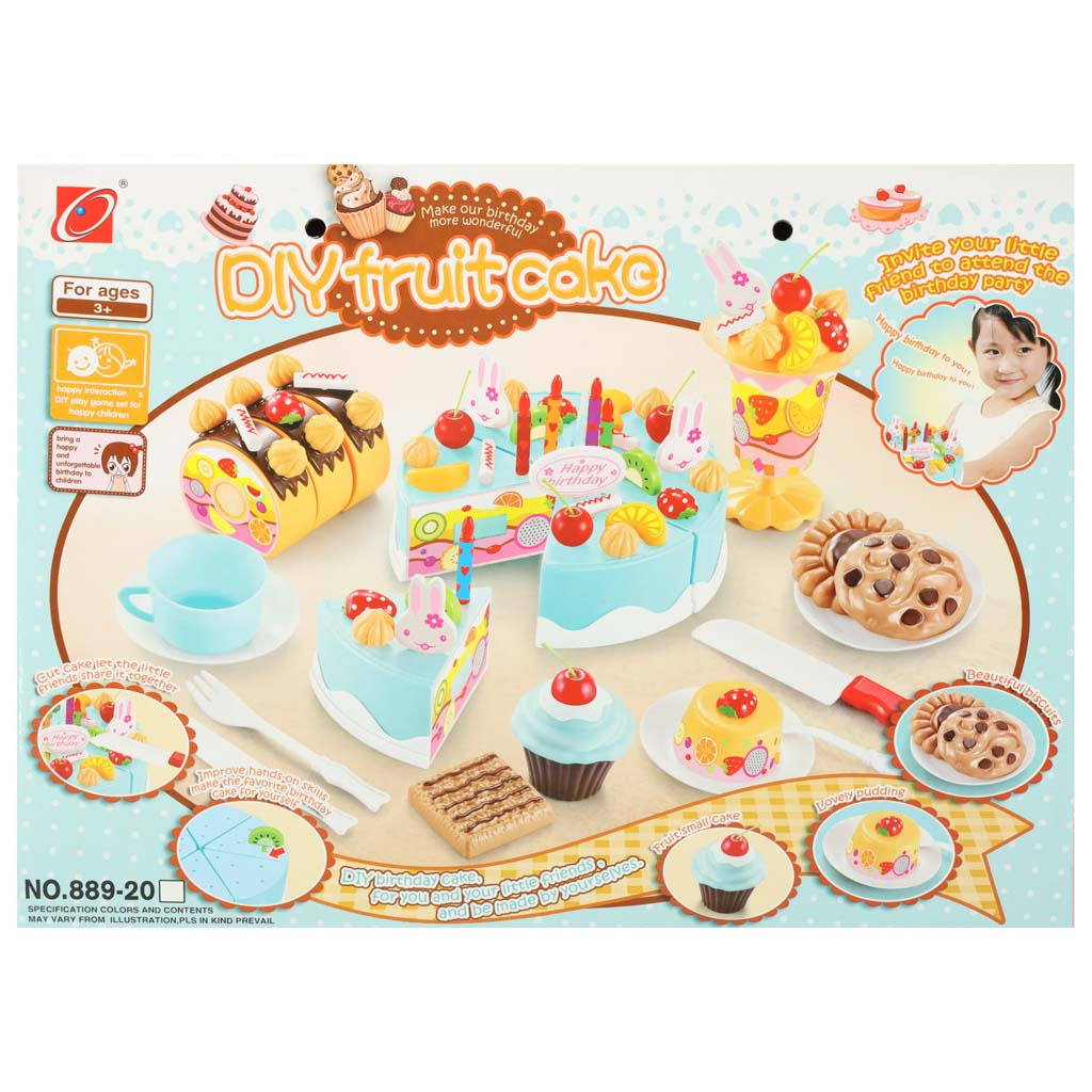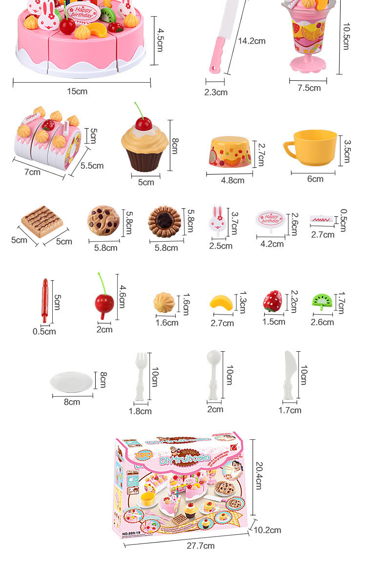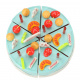 Torta pozostáva zo 6 kusov. Dieťa môže tortu "krájať" plastovým nožom, ktorý je súčasťou sady. Kúsky torty sú spojené suchým zipsom.