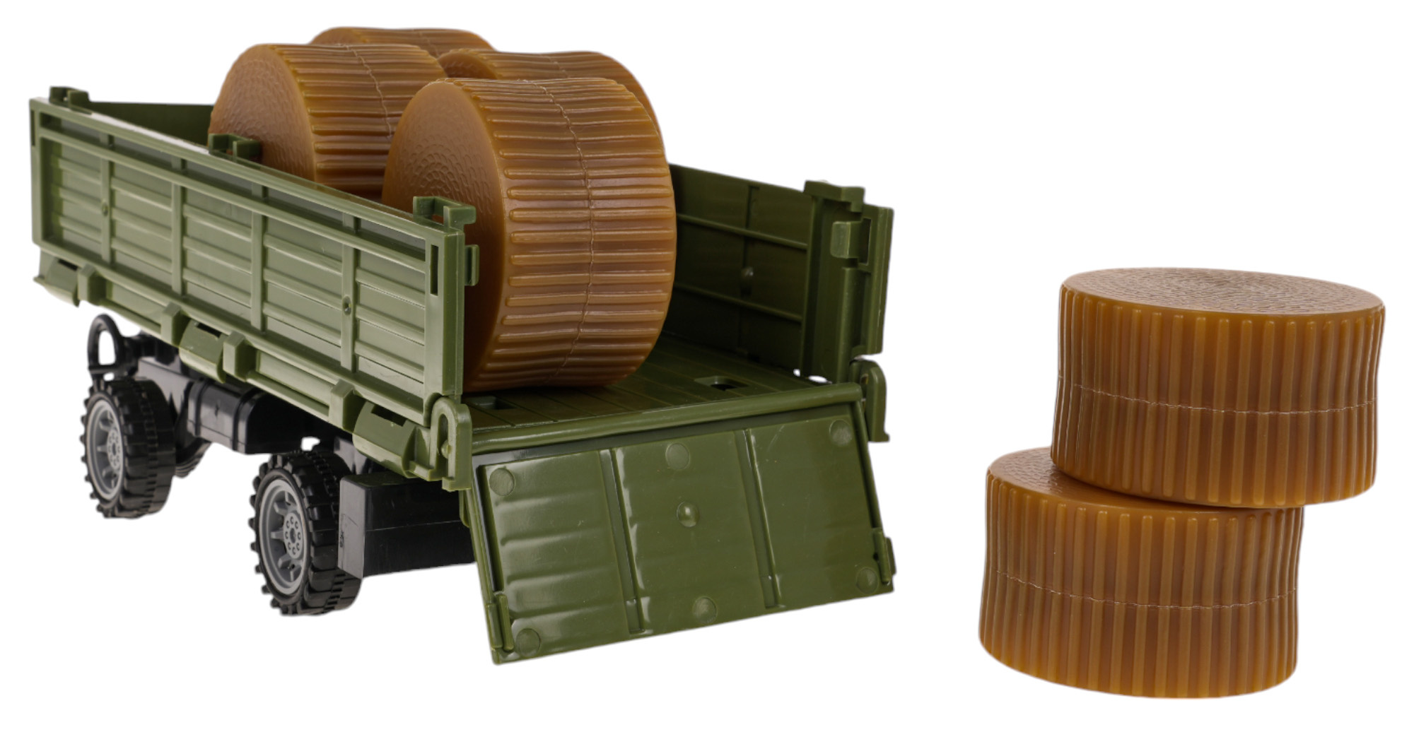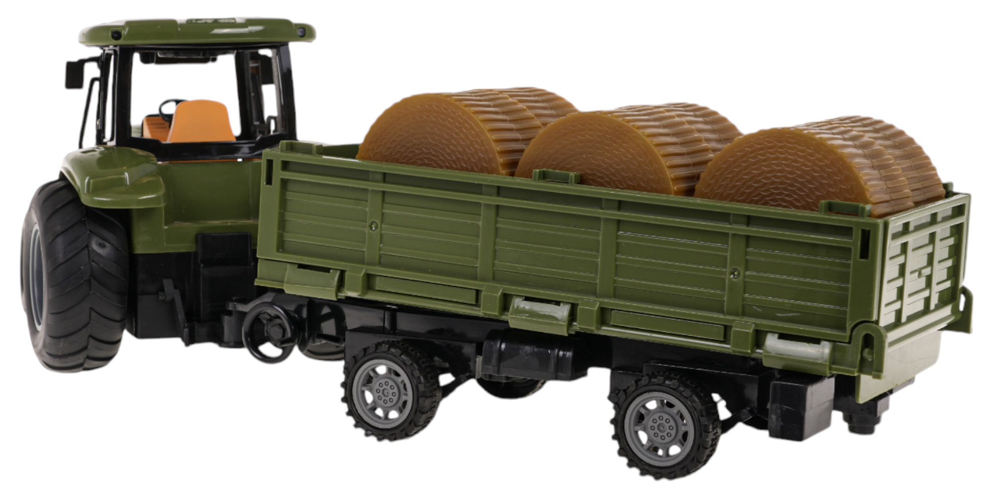 Diaľkovo ovládaný traktor pre deti od 3 rokov. Traktor bol vyrobený z plastu najvyššej kvality, má gumové kolesá s dezénom a odnímateľný príves. Jazdí všetkými smermi, dopredu, dozadu, doprava a doľava. Realistický vzhľad a detaily nabádajú k hre. Traktor je napájaný batériami typu 3 x AA 1,5 V (nie sú súčasťou balenia), ovládač batériami typu 2 x AA 1,5 V (nie sú súčasťou balenia).