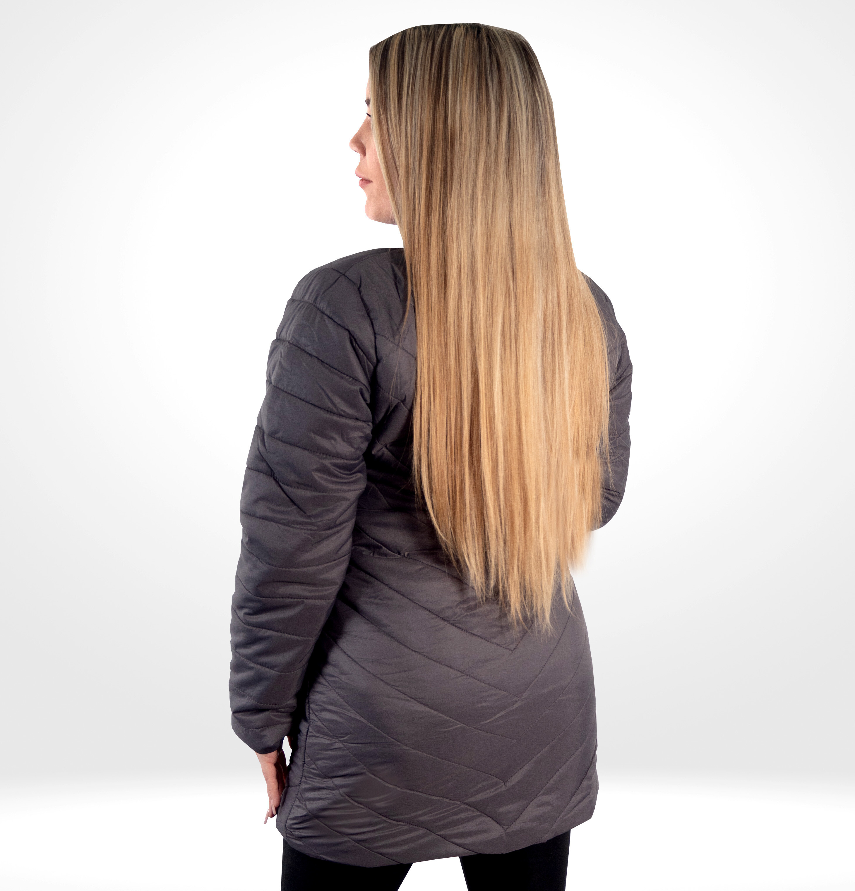 - Strih: Prešívaná, zvýšený golier, celoprepínací zips
