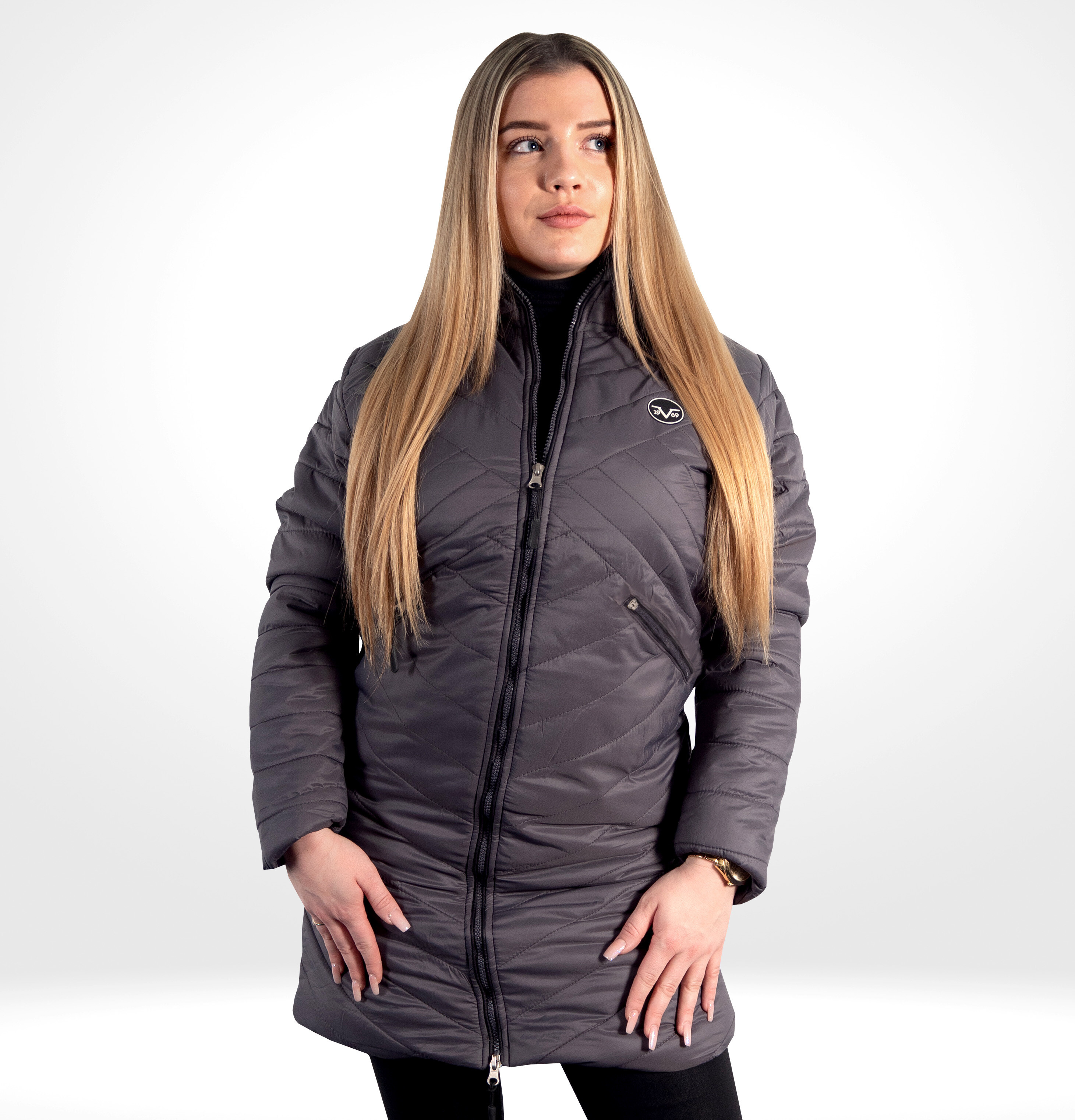 Elegantný dámsky prešívaný kabát značky Versace 19.69, ktorý spája štýl a pohodlie. Ideálne pre chladnejšie dni, udržiava teplo a skvele vyzerá k akémukoľvek outfitu.