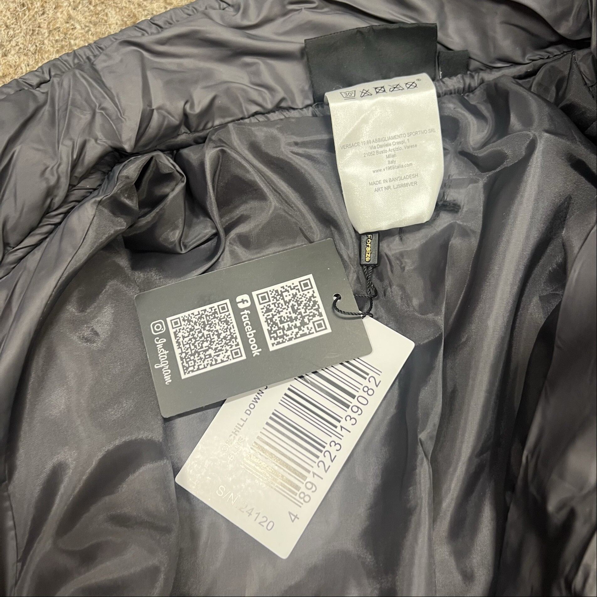 Špecifikácia prešívaného zimného kabáta Versace 19.69 C68 Sivá.