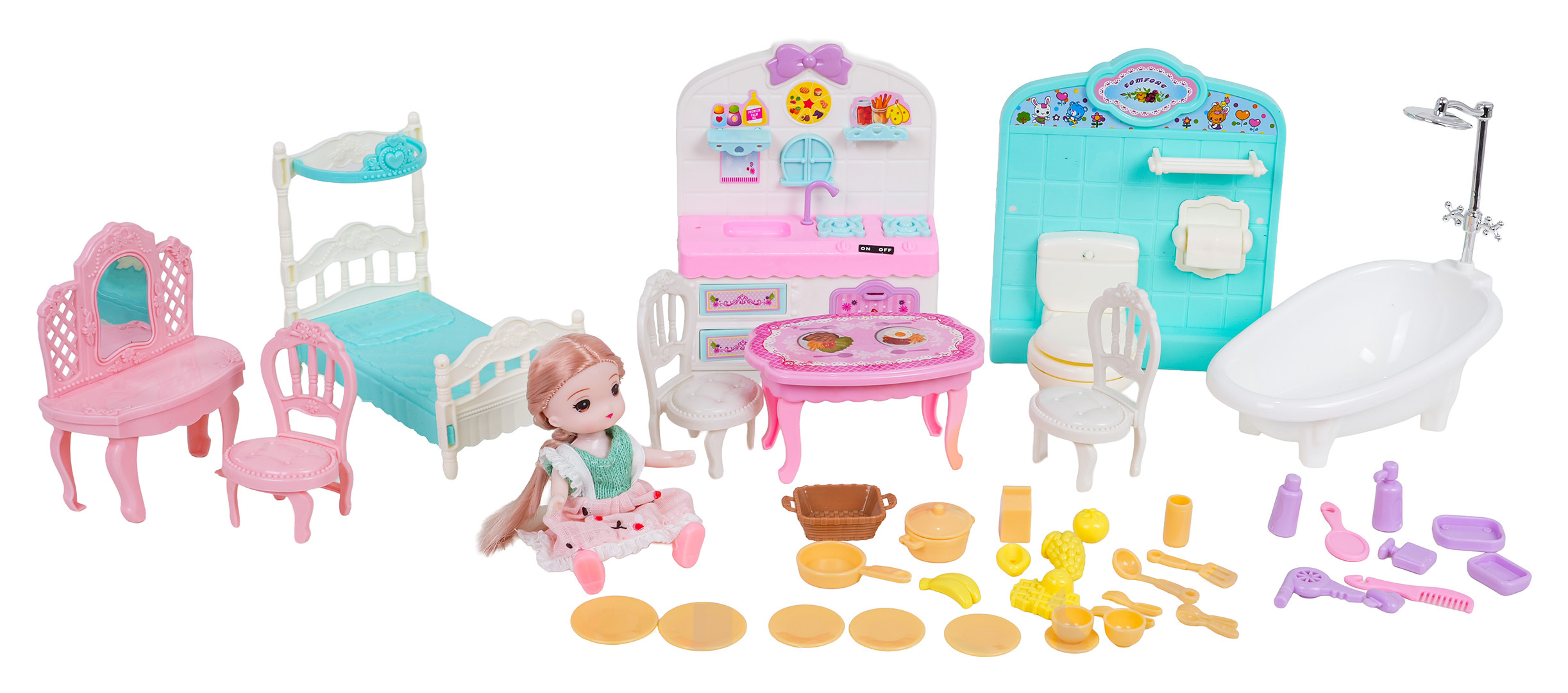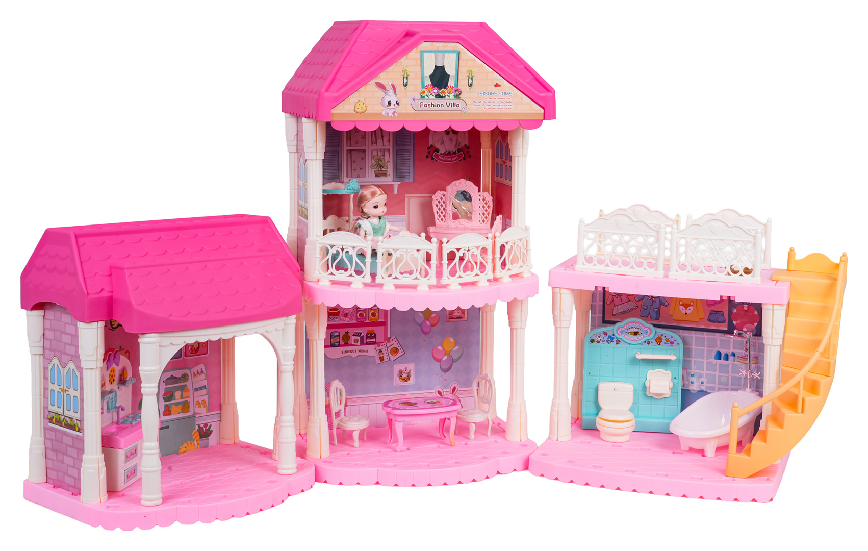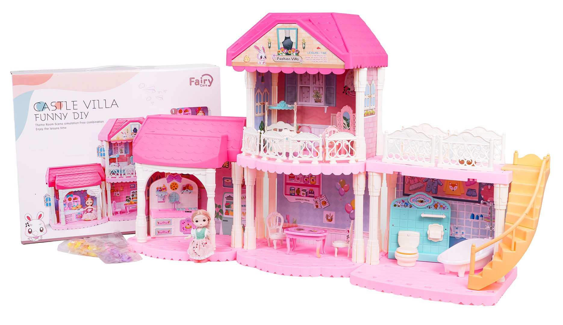Krásny, ružový, veľký domček s vybavením a bábikou v sade pre deti od troch rokov. Domček sa skladá z 3 samostatných modulov, ktoré je možné skladať v ľubovoľných kombináciách. V domčeku nájdeme kompletne vybavenú obývačku, kúpeľňu, kuchyňu a šatník. Súprava je vyrobená z najkvalitnejšieho plastu v živých farbách, ktoré priťahujú pozornosť dieťaťa.