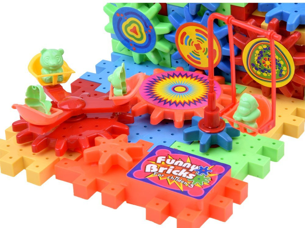 Skvelá zábava pre deti, ktoré si rozvíjajú manuálnu zručnosť, učí ich manipulovať s predmetmi, spájať ich k sebe, učí ich rozpoznávať tvary a farby. Bloky ideálne poskytnú vášmu dieťaťu voľný čas počas dlhých jesenných a zimných večerov. Živé farby priťahujú pozornosť dieťaťa. Súprava sa dodáva so samolepkami na nalepenie na vybrané prevodové stupne.