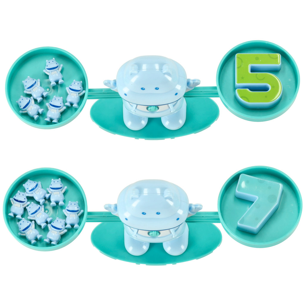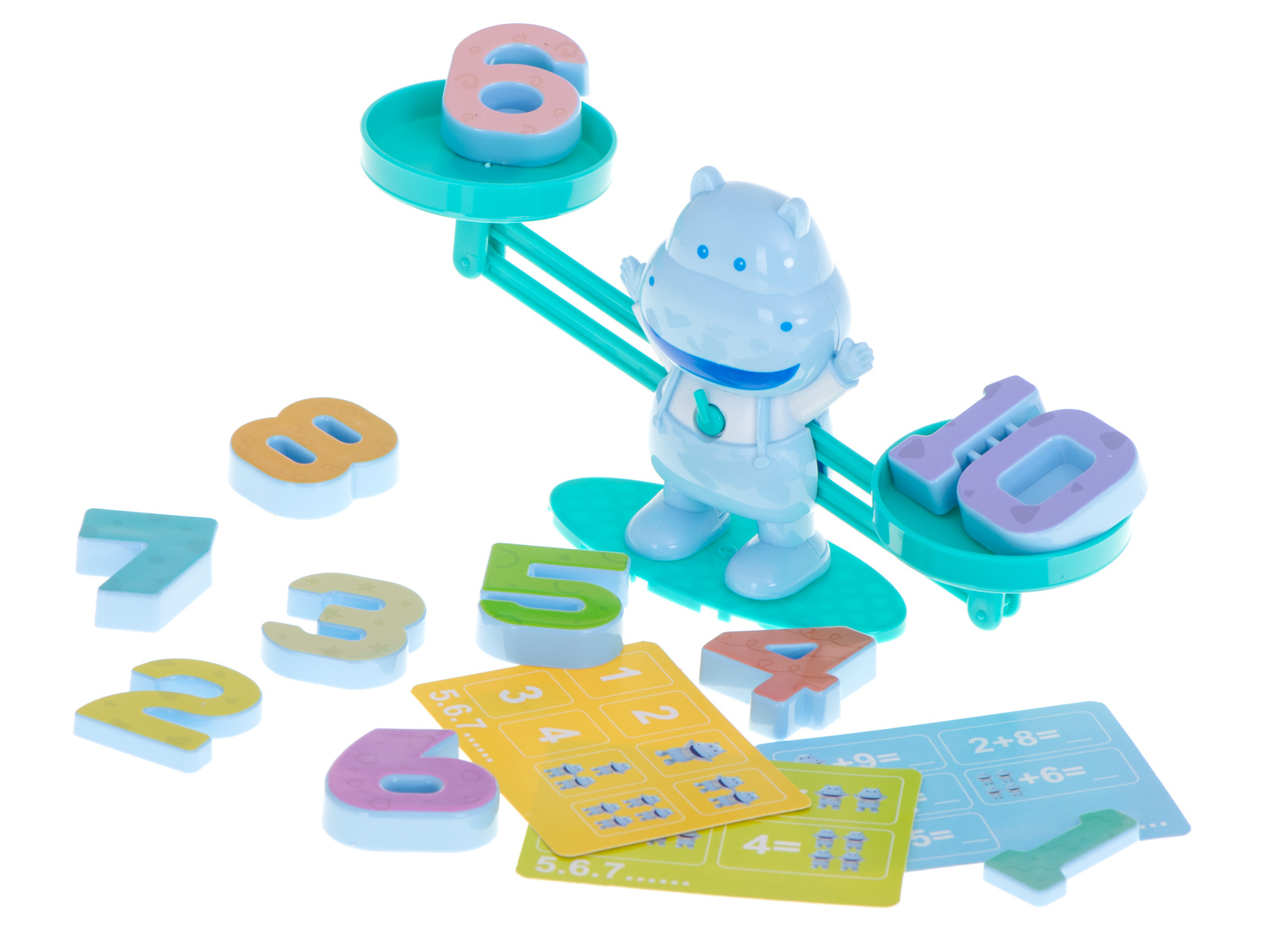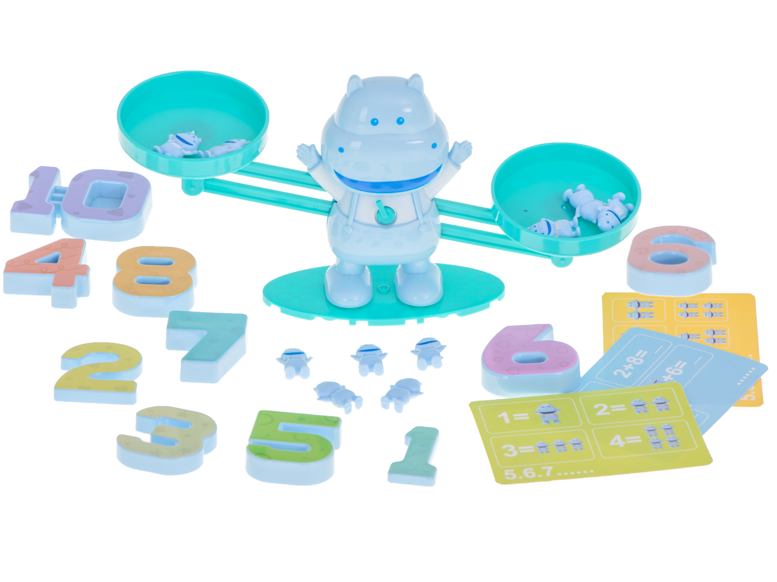 Ako učiť aritmetiku zábavne a jednoducho? Tento hroch je ideálnou voľbou! Na jednu misku váhy jednoducho položíte číslo a na druhú príslušný počet hrochov.