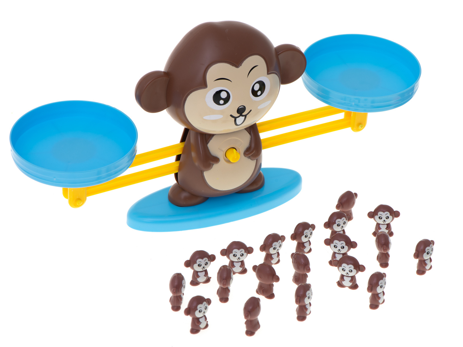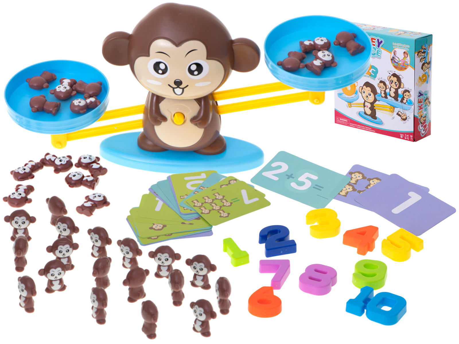 Ako učiť aritmetiku zábavne a jednoducho? Táto opica je ideálnou voľbou! Na jednu misku váhy jednoducho položíte číslo a na druhú príslušný počet opíc.