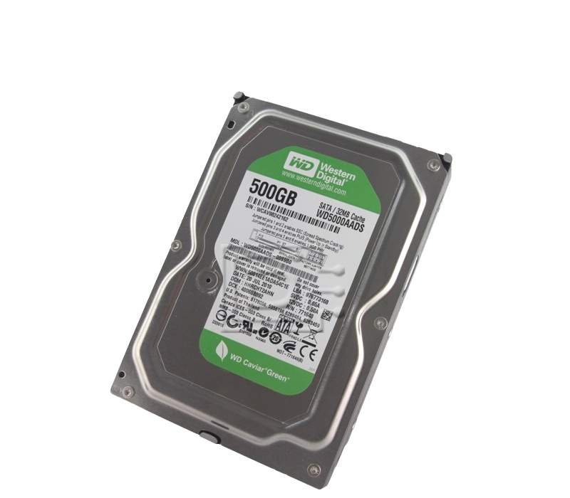 Pevný disk Western Digital s kapacitou 500 GB s platňami, ktoré sa otáčajú rýchlosťou 7200 otáčok za minútu.