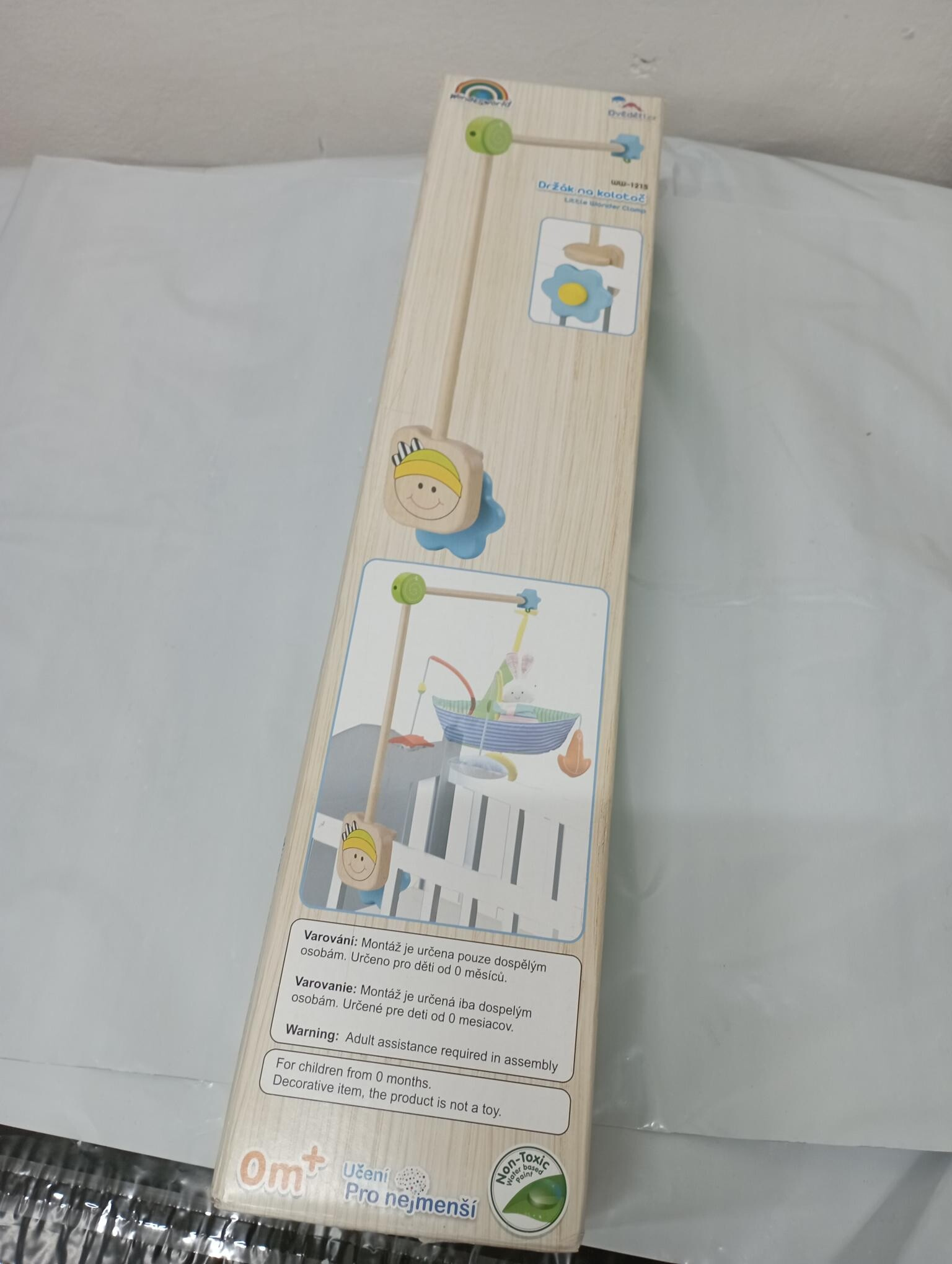 Dekorovaný drevený vešiak pre detský kolotoč je vyrobený z masívneho dreva a je ľahko zostaviteľný, opatrený robustnými závitmi. K zábradliu postieľky sa upína veľkým praktickým kolieskom s motívom kvietka, vďaka ktorému ho možno pripojiť pevne a v prípade potreby aj ľahko odňať. Na svojom konci je opatrený pútkom na zavesenie kolotoča. Hlavné vlastnosti:ľahko zostaviteľnýrozsah upínania 3–5 cmvytříbená farebnosť a zdobeniemasívne drevené prevedenie.