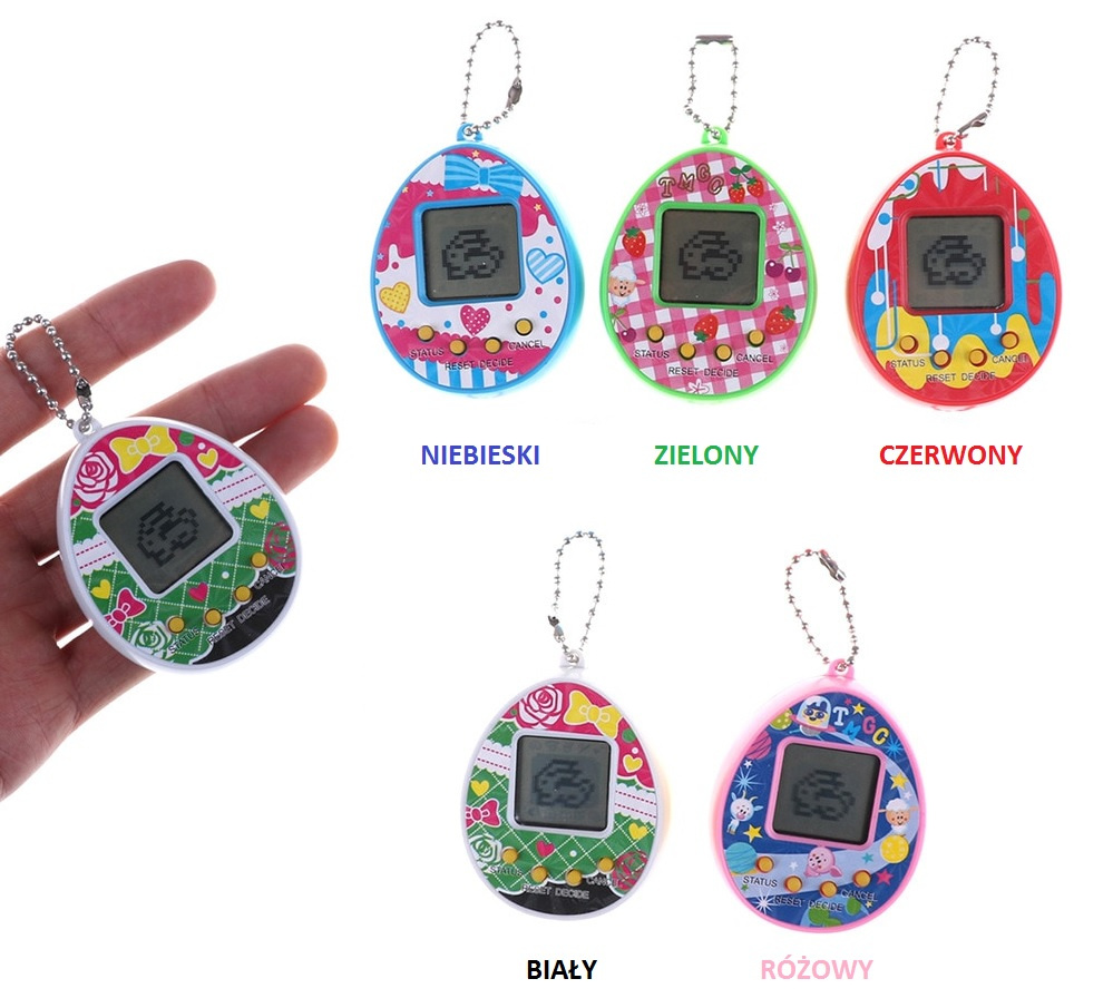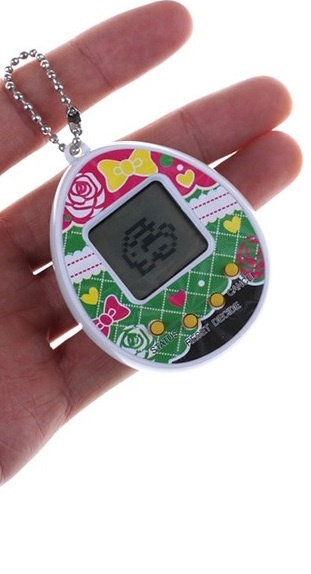 Elektronická hra tamagoči v tvare vajíčka. Umožňuje kŕmiť, napájať a starať sa o vybrané zviera. Učí zodpovednosti. Má zvukové efekty. K dispozícii je niekoľko vzorov a farieb. Napájanie batériami AG13 (sú súčasťou balenia). Rozmery: 7x5 cm.Úplný popis