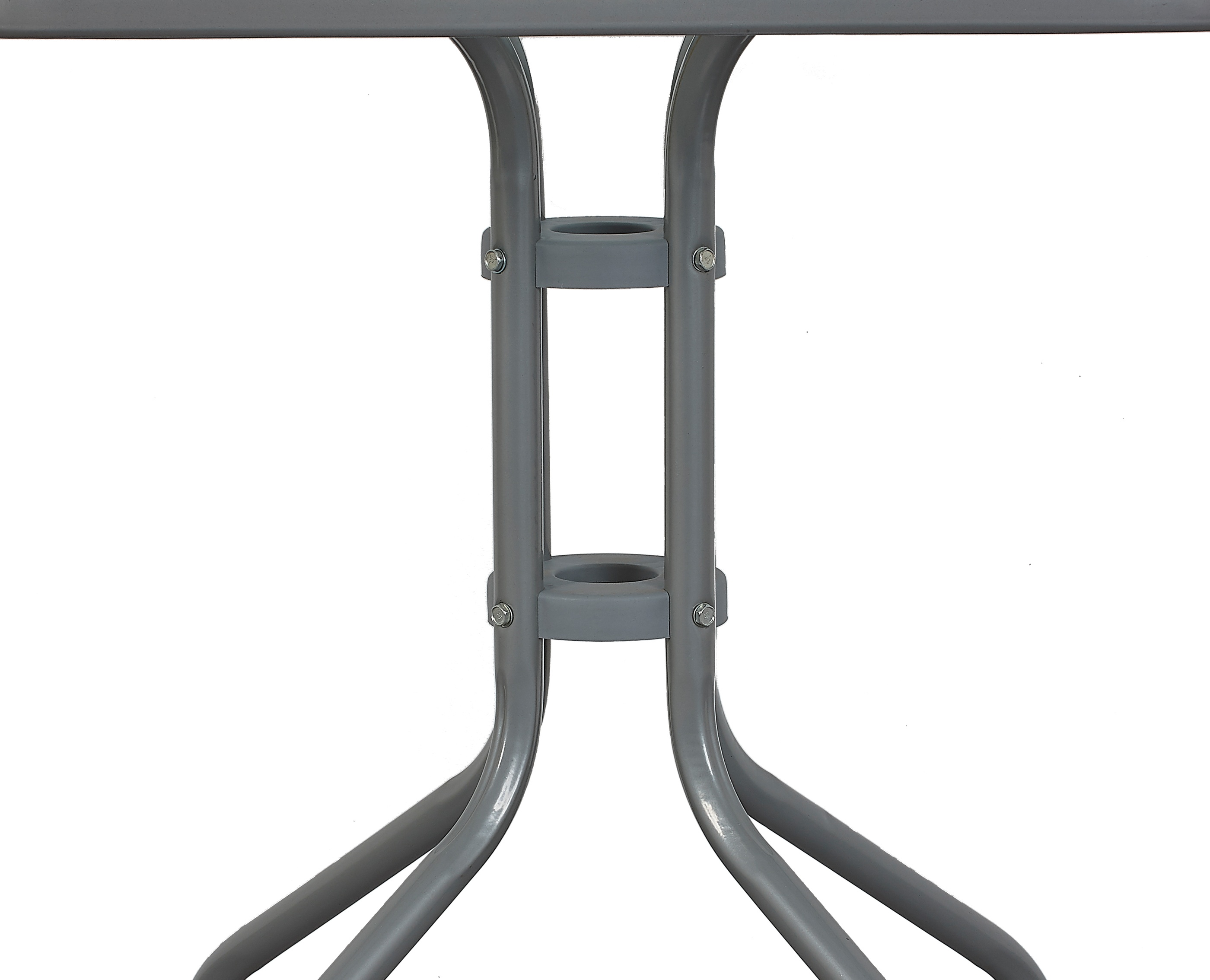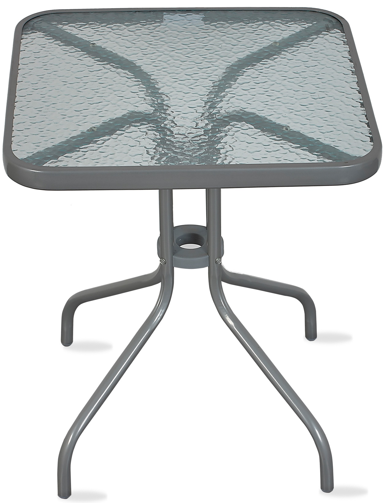 Záhradný stôl BISTRO s pevným kovovým rámom a vrúbkovanou sklenenou doskou v modernom dizajne, vhodný do záhrad, terasy, kaviarne, altánky, balkóny alebo pláže.