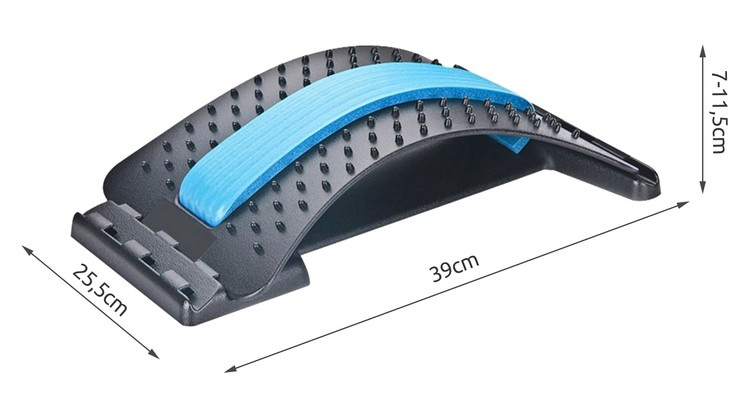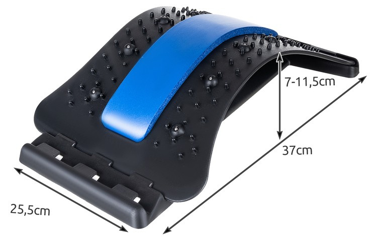 ŠPECIFIKÁCIA - materiál: ABS a PP pena; akupresúrne masážne hroty: Áno; pohodlný penový popruh: Áno; tri úrovne nastavenia: Áno; možnosť použitia v sede aj v ľahu: Áno; maximálne zaťaženie: 150 kg; rozmery (výška/šírka/hĺbka): 7-11,5/25,5/37cm; hmotnosť: 0,53 kg; hmotnosť v balení: 0,64 kg