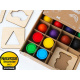 (4 farby) Najdôležitejšia je bezpečnosť, preto sú naše farby dermatologicky testované. Vďaka tomu sú pre batoľa bezpečné. S našimi farbami môže vaše dieťa maľovať rukami alebo štetcom. Farby sú bez zápachu a farby sú veľmi intenzívne a dlhotrvajúce. To vám však nebráni v umývaní rúk a oblečenia - potrebujete len vodu a mydlo. Pri maľovaní prstami sa dieťa učí miešať farby, posilňuje svaly prstov a ruky prostredníctvom hmatu. Dôležitou vlastnosťou je trvanlivosť výrobku, farby zapečatené po každom hraní zostanú vo výbornom stave až viac ako 2 roky vďaka polystyrénovej zmesi, ktorá nereaguje s obsahom tuby.