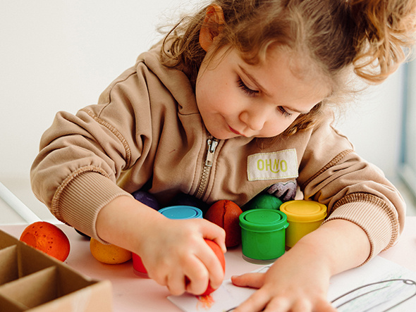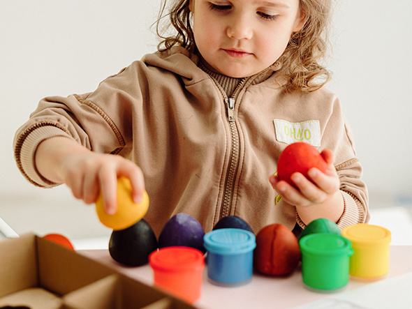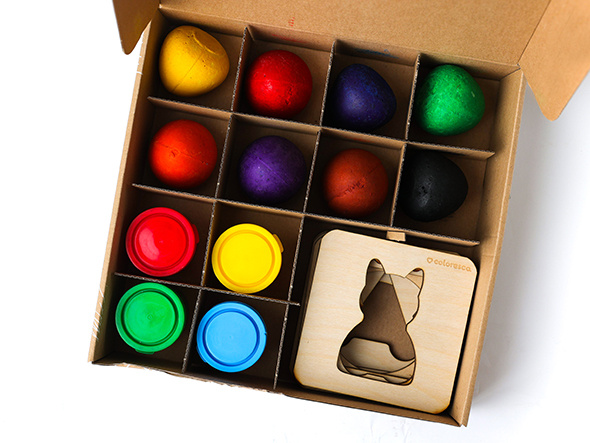 (8 farieb), t. j. veľké pastelky, ktoré môže jednoročné dieťa ľahko uchopiť svojimi malými rúčkami, stimulujú jemnú motoriku. Pastelky majú tvar vajíčka, takže nehrozí nebezpečenstvo prehltnutia pastelky. Ďalšou vlastnosťou tohto výrobku je jeho odolnosť, ak by dieťa chcelo pastelku rozhrýzť, ani sa nerozpadne.