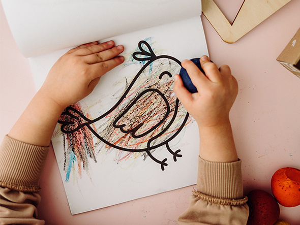 sada obsahuje pastelky, farby, omaľovánky a šablóny.