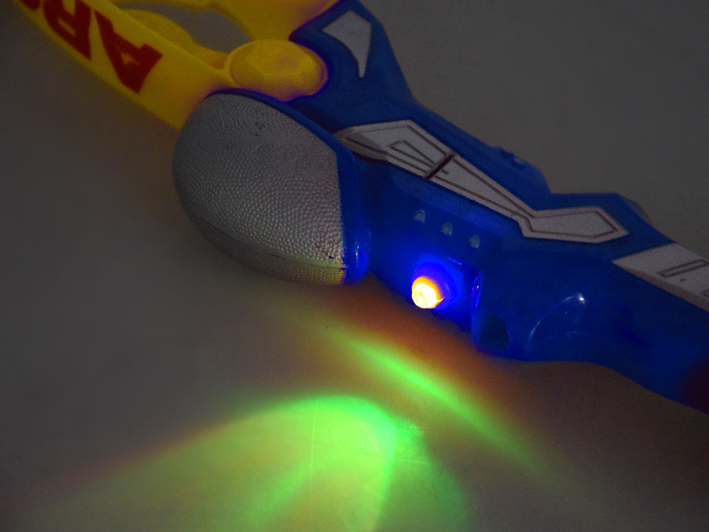 Šípky sú zakončené gumovými prísavkami, takže pri hre podľa pravidiel nehrozí žiadne riziko zranenia. Luk je vybavený malou LED diódou, ktorá vydáva blikajúce farebné svetlo, čo zvyšuje zábavu, najmä v tmavej miestnosti alebo v noci.