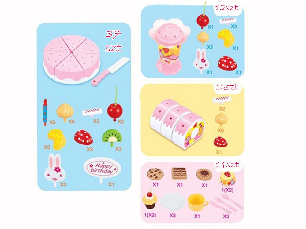 Neoddeliteľnou súčasťou každej úspešnej narodeninovej oslavy je torta. Predstavujeme sadu, s ktorou bude môcť každá malá hostiteľka usporiadať nezabudnuteľnú párty. Súčasťou sady je torta, ktorú možno rôzne zdobiť, krájať a podávať hosťom. Súčasťou je aj ďalšie občerstvenie, napr.. koláčiky, sušienky atď.